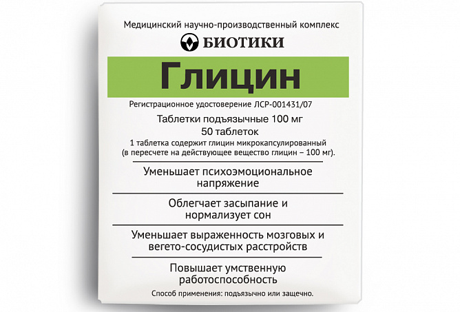Глицин является регулятором обмена веществ, нормализует и активирует процессы защитного торможения в ЦНС, уменьшает психоэмоциональное напряжение, повышает умственную работоспособность.
