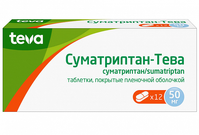 Всасывание. После перорального приема суматриптан быстро всасывается, 70 % от максимальной плазменной концентрации достигается через 45 мин. После приема дозы 100 мг среднее значение максимальной концентрации в плазме крови составляет 54 нг/мл. Средняя величина абсолютной биодоступности составляет 14 % частично вследствие пресистемного метаболизма, частично из-за неполной абсорбции.