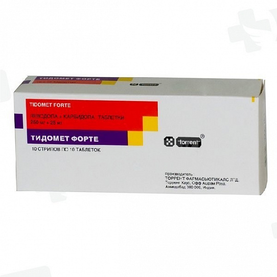 Тидомет Форте при замене леводопы Прием леводопы прекращают за 12 часов до начала лечения препаратом Тидомет Форте, а в случае приема пролонгированных форм левокарбидопы за 24 часа.