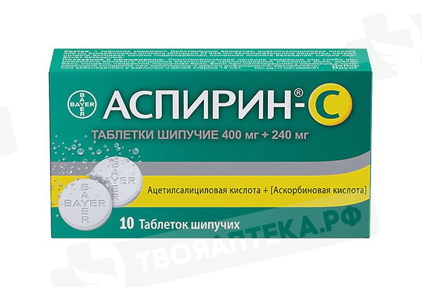 Действующие вещества: ацетилсалициловая кислота 400 мг, аскорбиновая кислота (витамин С) 240 мг.