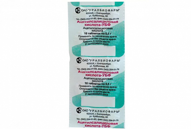 1 таб.: ацетилсалициловая кислота 500 мг.