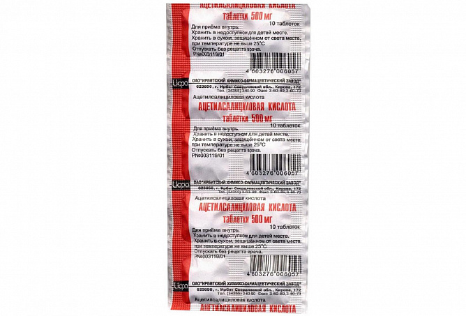1 таб.: ацетилсалициловая кислота 500 мг.