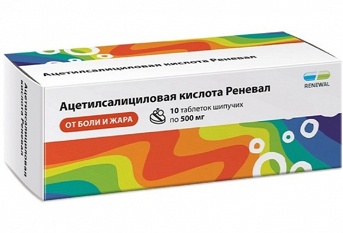 Ацетилсалициловая кислота Реневал 500 мг, 10 шт. - это лекарственное средство, которое предназначено для облегчения болевых симптомов, уменьшения температуры при лихорадке и снижения воспаления при различных заболеваниях. Действующее вещество - ацетилсалициловая кислота, оказывает противовоспалительное, жаропонижающее и болеутоляющее действие. Препарат применяется при головной боли, зубной боли, мышечных болях, болях в спине и суставах, а также при ОРВИ, гриппе и других инфекционно-воспалительных заболеваниях.