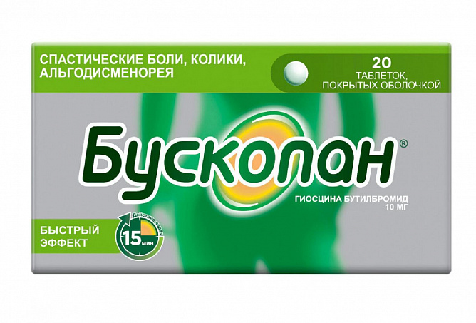 Будучи четвертичным аммониевым производным, гиосцина бутилбромид не проникает через ГЭБ, поэтому антихолинергическое влияние на ЦНС отсутствует. Препарат начинает проявлять спазмолитическое действие через 15 мин после приема.