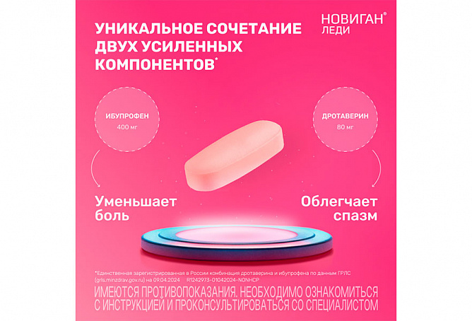 Новиган Леди 80мг+400мг таблетки покрытые пленочной оболочкой N10