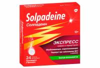 Солпадеин Экспресс таблетки растворимые, №24 — обезболивающее средство ускоренного всасывания для облегчения болевого синдрома слабой и умеренной интенсивности, в том числе таких видов боли, как головная, зубная, мигрень и другие. Подходит для взрослых и детей с 12 лет. Производится в Ирландии.
