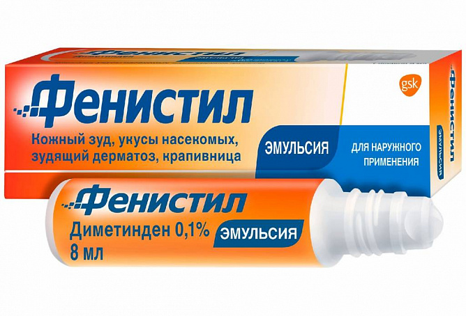 Фенистил Эмульсия с шариковым аппликатором – охлаждающая и успокаивающая эмульсия с антигистаминным действием, которая помогает облегчать симптомы кожного зуда, вызванного укусами насекомых (например, зуд после укусов комаров), кожной сыпью, бытовыми или солнечными ожогами легкой степени. Она начинает действовать уже с первых минут после нанесения, приятно охлаждает и успокаивает кожу.