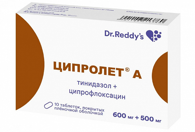 Действующие вещества: ципрофлоксацина гидрохлорида моногидрат 582,285 мг (эквивалентно 500 мг ципрофлоксацина), тинидазол 600,000 мг.