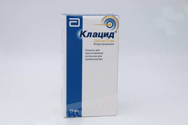 Клацид 250мг/5мл гранулы для приготовления суспензия для приема внутрь49.5г(70мл)