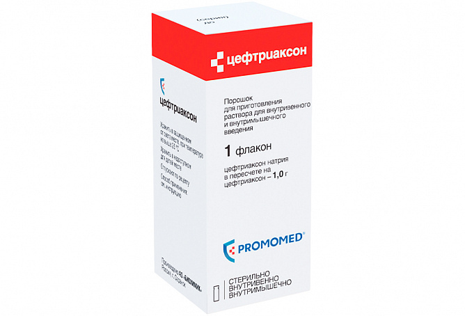 1 флакон содержит цефтриаксон (в форме динатриевой соли) 1 г