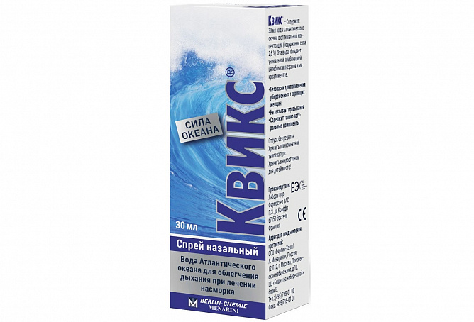 «КВИКС®» представляет собой назальный спрей, содержащий воду Атлантического океана в оптимальной концентрации (содержание соли 2,6%).