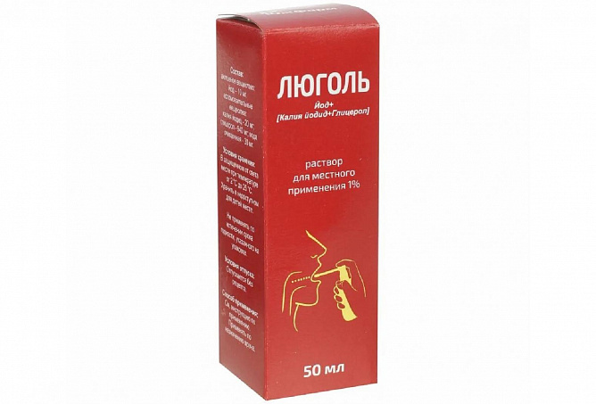 Вспомогательные вещества: калия йодид 20 мг, глицерол 940 мг, вода очищенная 30 мг.