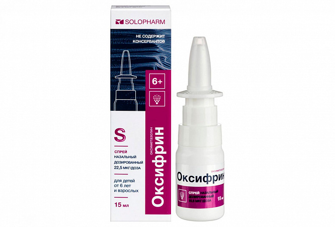 22.5 мкг оксиметазолина гидрохлорида для Оксифрин, спрей назальный дозированный 22.5 мкг/доза.