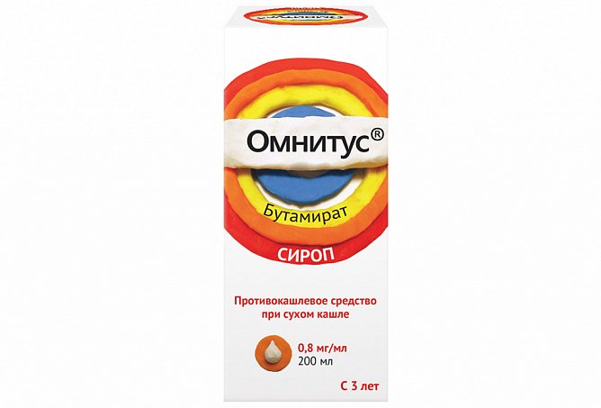 Фармакодинамика Бутамират, действующее вещество препарата Омнитус, является противокашлевым средством центрального действия.