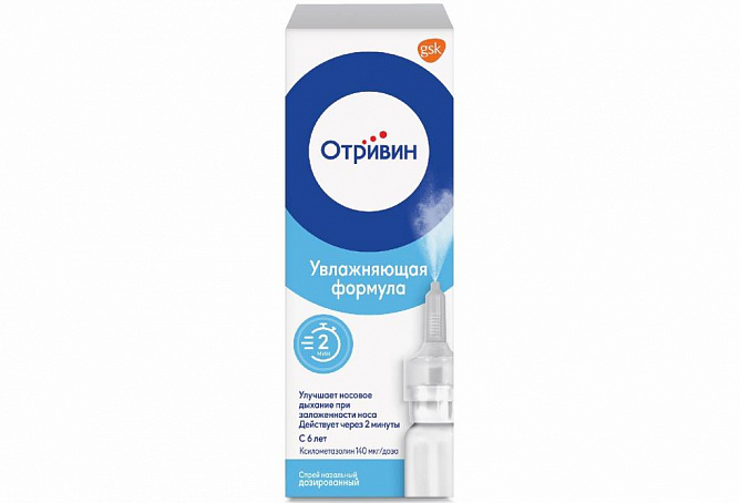 Спрей от насморка Отривин Увлажняющая формула начинает начинает действовать уже через 2 минуты после использования, действует до 12 часов.
