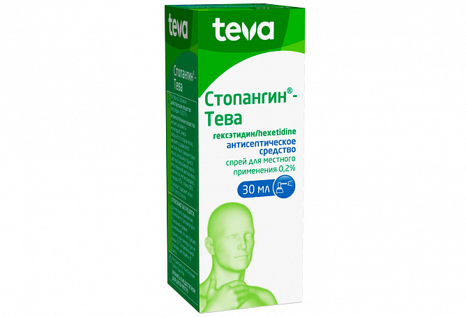 Противомикробное действие препарата Cтопангин®-Тева связано с подавлением окисли-тельных реакций метаболизма бактерий (антагонист тиамина). Препарат обладает широ-ким спектром антибактериального и противогрибкового действия (в частности, в отно-шении грамположительных бактерий и грибов рода Candida). Гексэтидин оказывает сла-бое