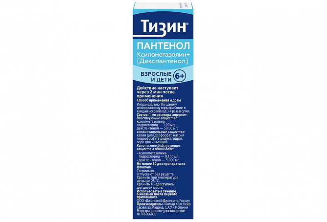 Спрей Тизин с пантенолом - это эффективное лекарственное средство для лечения заложенности носа и сопутствующих симптомов. Препарат имеет удобную форму в виде назального спрея, который позволяет дозировать его легко и точно. Состав включает пантенол - органический соединение, которое способствует быстрому заживлению слизистых оболочек, увлажнению и смягчению их. Медикамент эффективно справляется с повышенной сухостью и раздражением в носовых ходах, уменьшает отек и улучшает дыхание. Применение Тизин с пантенолом не вызывает привыкания и позволяет получить быстрый и длительный результат. Все эти свойства делают его идеальным для использования при лечении насморка с любой этиологией.