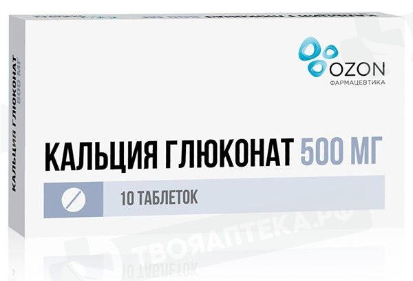 Кальция глюконат 500 мг таблетки N10/Озон/