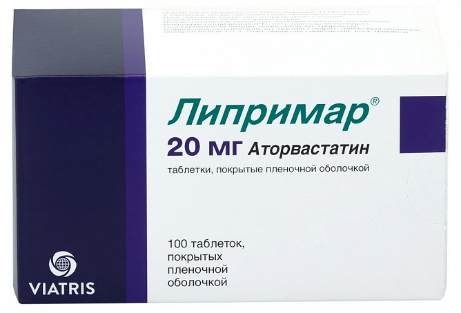 Действующее вещество: аторвастатин кальция (эквивалентно 20 мг аторвастатина)