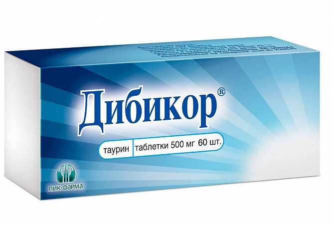 ФармакокинетикаПосле однократного приёма 500 мг препарата Дибикор действующее вещество таурин через 15 - 20 минут определяется в крови, достигая максимума через 1,5 - 2 часа.