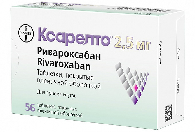 Рекомендуемая доза составляет по 1 таблетке препарата Ксарелто® 2,5 мг два раза в день.