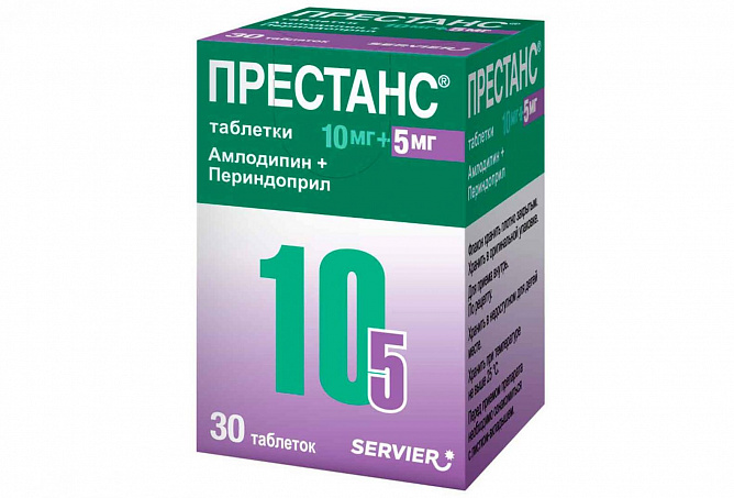 ФОРМА ВЫПУСКА Таблетки, содержащие 5 мг периндоприла аргинина + 5 мг амлодипина, 10 мг периндоприла аргинина + 10 мг амлодипина, 5 мг периндоприла аргинина + 10 мг амлодипина, 10 мг периндоприла аргинина + 5 мг амлодипина.