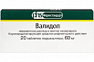 Действующее вещество: левоментола раствор в ментил изовалерате (валидол) - 60,0 мг;