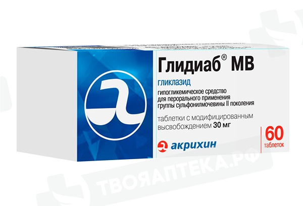 Фармакологическое действие Глидиаб MB является пероральным гипогликемическим препаратом, производным сульфонилмочевины II поколения.