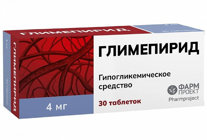 Активное вещество: глимепирид в пересчете на 100 % вещество - 4 мг.