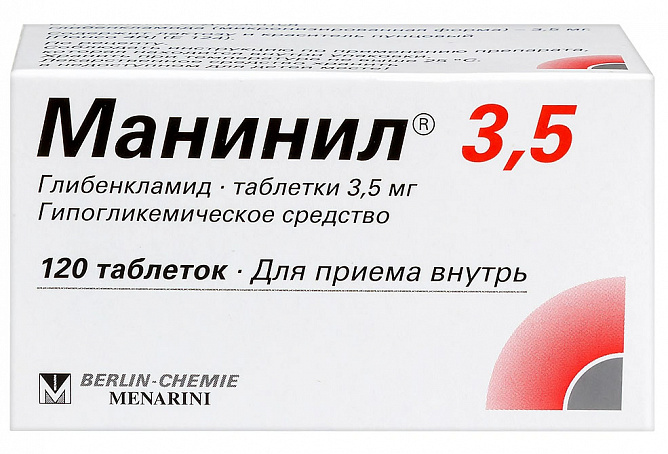Перевод с других гипогликемических препаратов на препарат Манинил 3,5 следует начинать под наблюдением врача с ½ – 1 таблетки препарата Манинил 3,5 в сутки