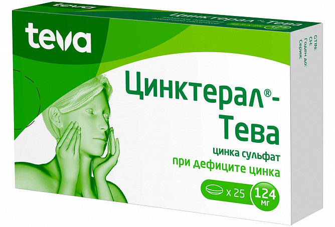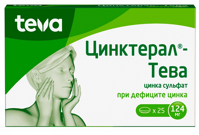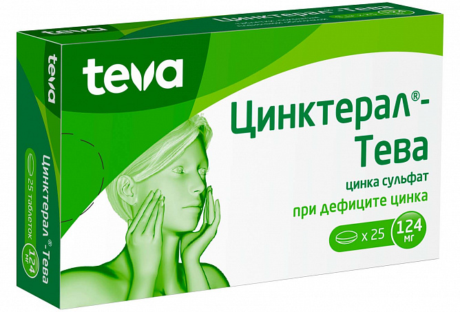 Цинктерал®-Тева, 124 мг, таблетки, покрытые пленочной оболочкой