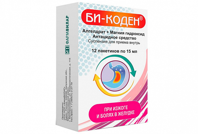 Взрослые и подростки старше 15 лет: Би-Коден® принимают внутрь по 15 мл (1 столовая ложка / 1 пакетик) через 1-2 часа после еды и на ночь, а также при возникновении болей в эпигастрии или изжоги. Суточная доза не должна превышать 6 пакетиков / 6 столовых ложек (90 мл суспензии в сутки). При рефлюкс-эзофагите препарат принимают через 30-60 минут после еды. При язвенной болезни желудка препарат принимают за 30 минут до приема пищи. Курс лечения не должен превышать 2-3 месяца. При эпизодическом применении (например, при дискомфорте после погрешностей в диете) принимают по 15 мл (1 столовая ложка / 1 пакетик) однократно.