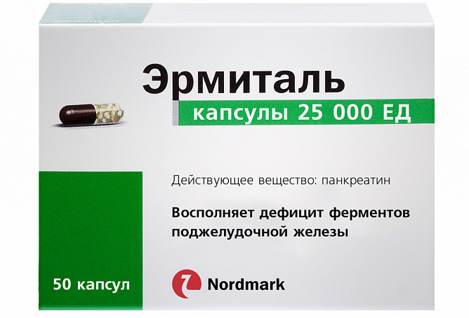 Эрмиталь содержит стандартный высокоактивный панкреатин, полученный из поджелудочной железы свиньи в виде микротаблеток, резистентных к воздействию желудочного сока.