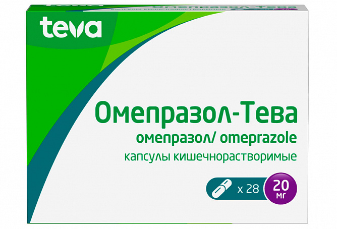 Омепразол -Тева 20 мг капсулы кишечнорастворимые N28