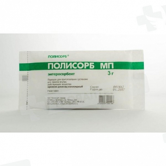 Торговое название препарата: Полисорб МПМеждународное непатентованное название или группировочное название: Кремния диоксид коллоидныйЛекарственная форма: порошок для приготовления суспензии для приема внутрь