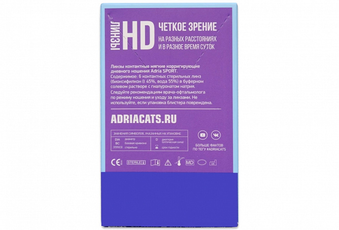 Напоминаем, что контактные линзы нужно подбирать только после консультации со специалистом. Линзы ADRIA Sport созданы для поклонников активного образа жизни. В упаковке — 6 линз (на 3 месяца ношения).