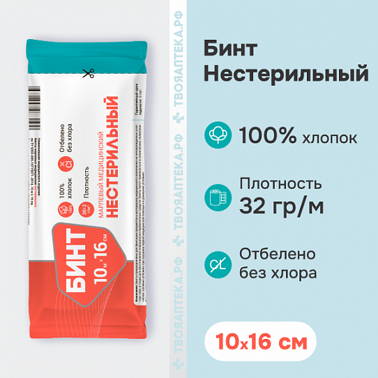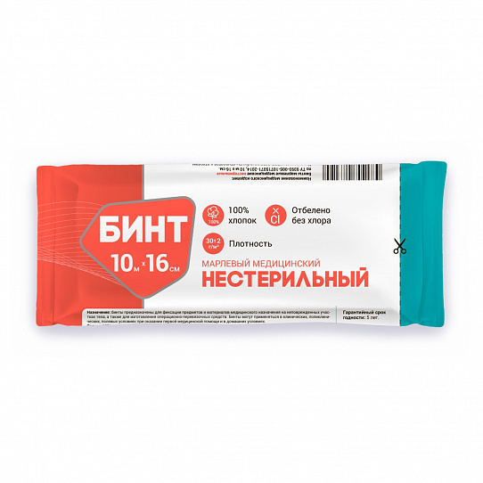 Бинт нестерильный индивидуальная упаковка 10м х 16см ТА