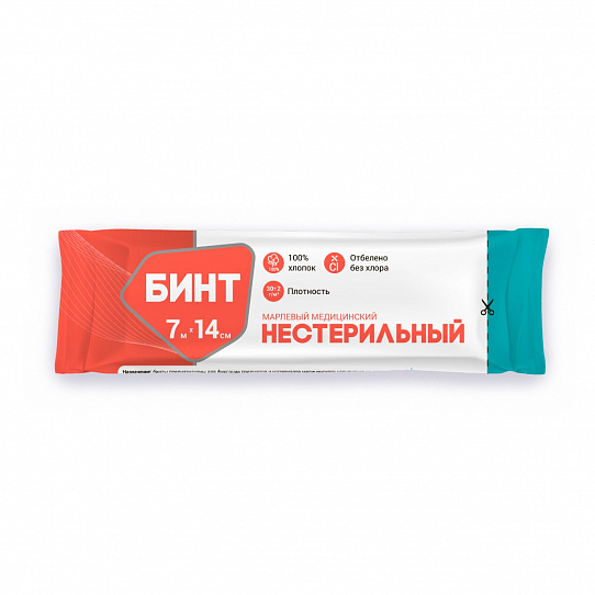 Бинт нестерильный индивидуальная упаковка 7м х 14см ТА