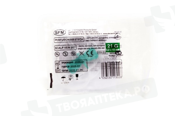 Игла катетер бабочка "SFM" -Устройство для кратковременной инфузии (вливаний в малые вены) со скоростью, потока не менее 11 мл/мин, остаточный объем не более 0.39 мл.,