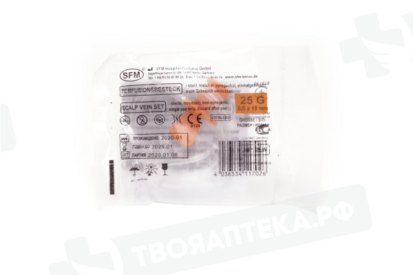 Игла катетер бабочка "SFM" -Устройство для кратковременной инфузии (вливаний в малые вены) со скоростью, потока не менее 11 мл/мин, остаточный объем не более 0.39 мл.,