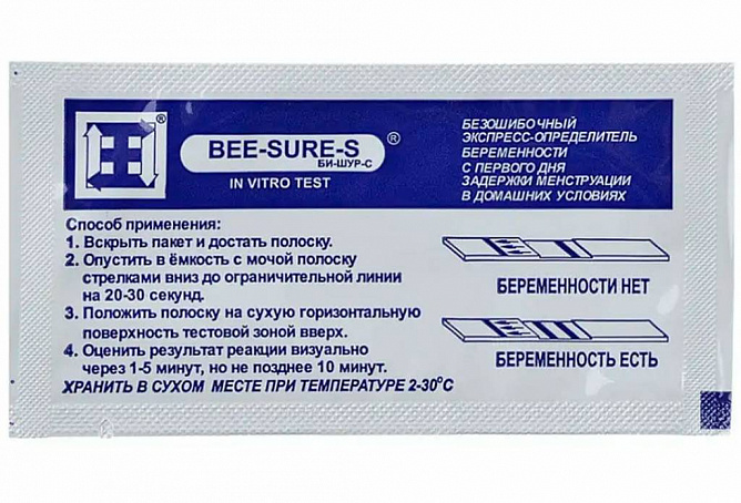 Полоска для иммунохроматографического определения хорионического гонадотропина (ХГЧ) в моче для ранней диагностики беременности (БИ-ШУР-С), 1 шт.