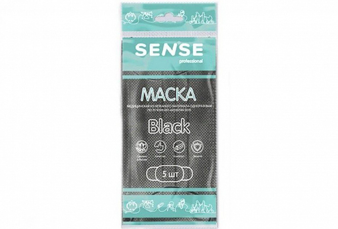 Маска медицинская Маска ООО Sense из нетканого материала одноразовая черная 5 шт.