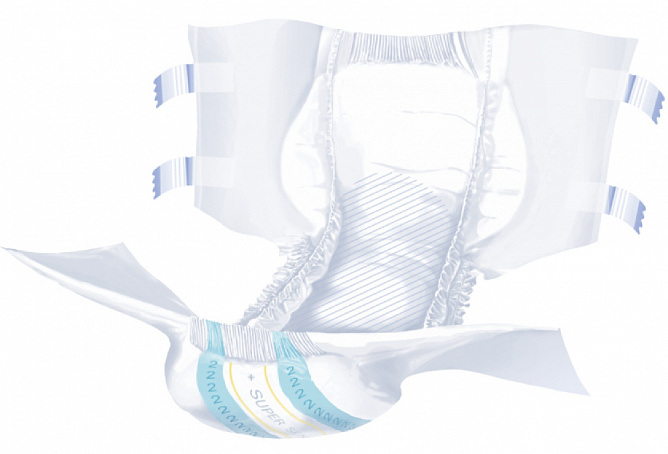 - многоразовые эластичные двойные застежки-липучки для более оптимальной фиксации на теле позволяют многократно закрепляться и открепляться в любом месте подгузника без риска разрыва внешнего слоя подгузника