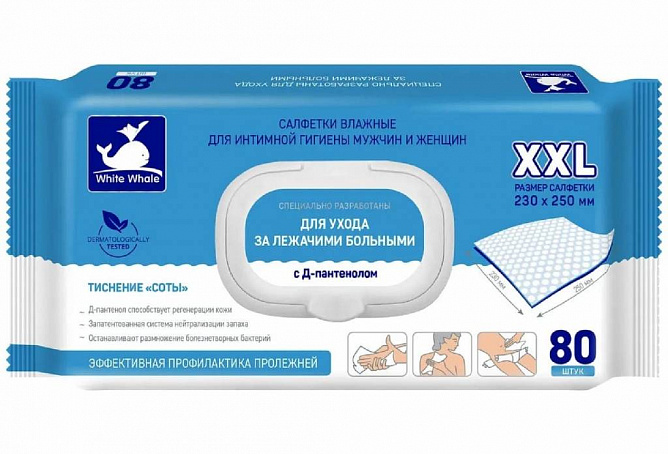 Салфетки влажные для лежачих больных с Д-пантенолом White Whale р. XXL N80