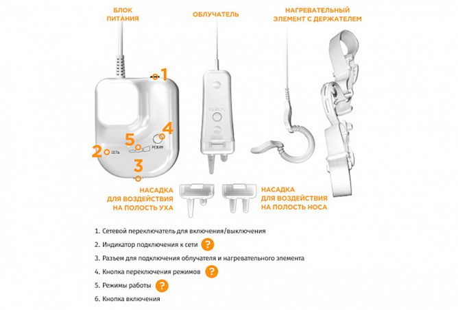 !!! Для лечения отита используется насадка "УХО", которую нужно приобретать отдельно
