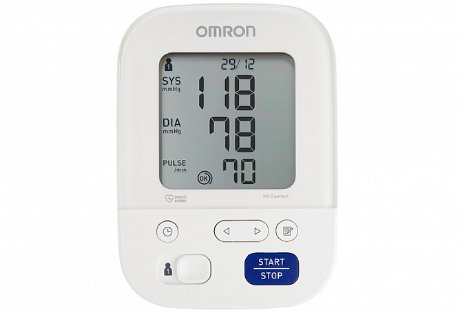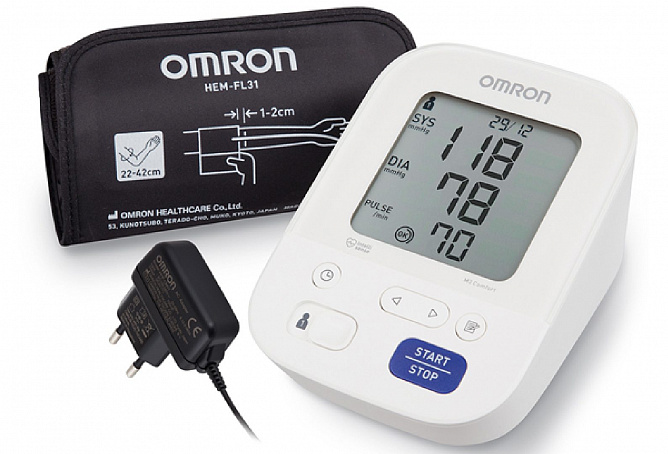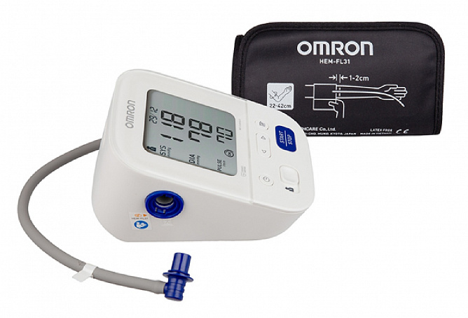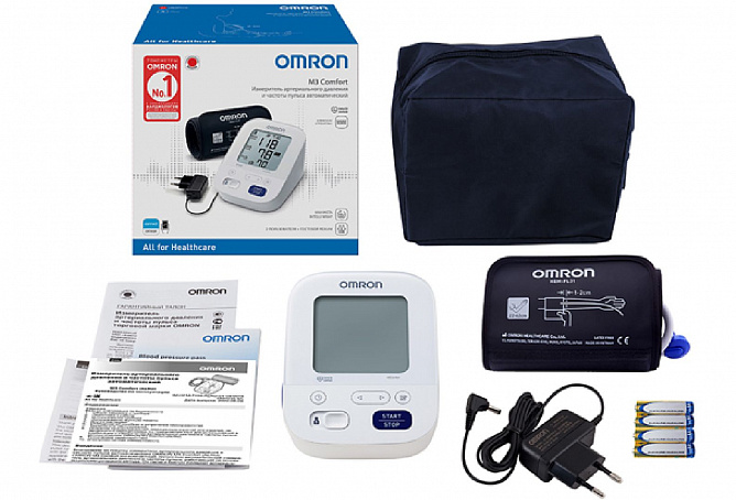 Комплектация: электронный блок, манжета компрессионная HEM-FL31, адаптер переменного тока HHP-CM01, руководство по эксплуатации, чехол для хранения прибора, комплект элементов питания, журнал для записи артериального давления, гарантийный талон.