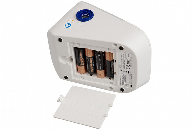 Работает от 4 элементов питания типа АА или от сети (батарейки и адаптер в комплекте).