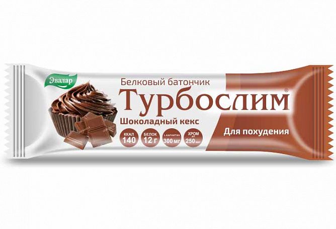 Турбослим белковый батончик со вкусом шоколадный кекс всего 140 ккал,уникальный состав: 12 г белка, 300 мг L-карнитина, до 250 мкг хрома.