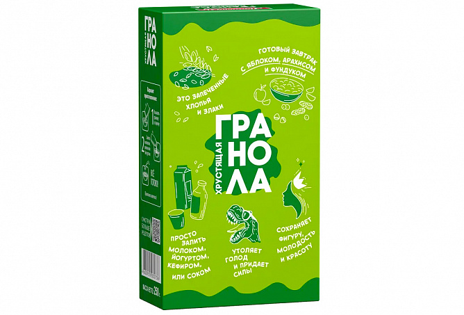 Хлопья и злаки богаты пищевыми волокнами, орехи - насыщенными жирами, а сушеное яблоко сохраняет пользу, вкус и аромат. Просто залейте гранолу по вкусу молоком, йогуртом, соком. Также ее можно употреблять в сухом виде.