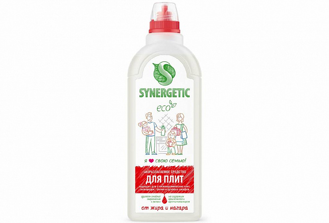 Биоразлагаемое средство для плит от жира и нагара SYNERGETIC - высокоэффективное щелочное средство для удаления жира, нагара, копоти, масляных пятен и накипи с плит и других кухонных поверхностей.